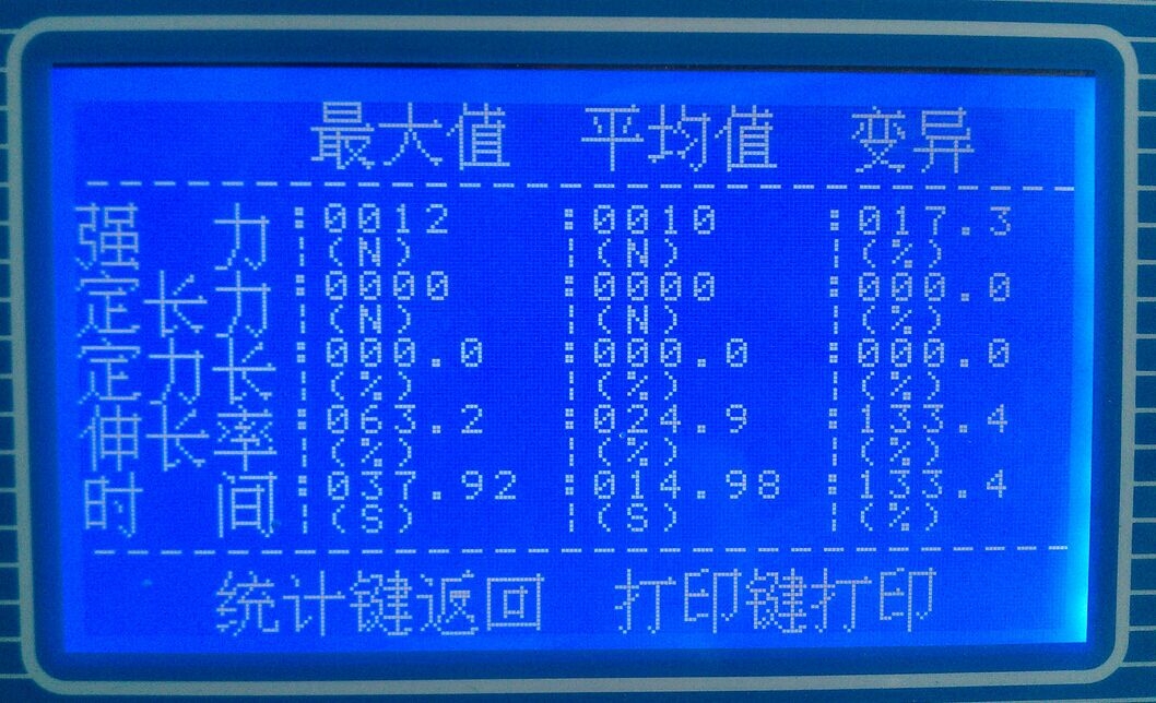 ”,试样断裂后,仪器会自动复位到夹持位置,如此反复,做完试验后,按“统计