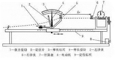 退捻加捻法是假设在一定张力下,纱线解捻后纱线伸长量与反向加捻时纱线缩短量相同的前提下进行测试的。一个典型的测试装置如图所示。