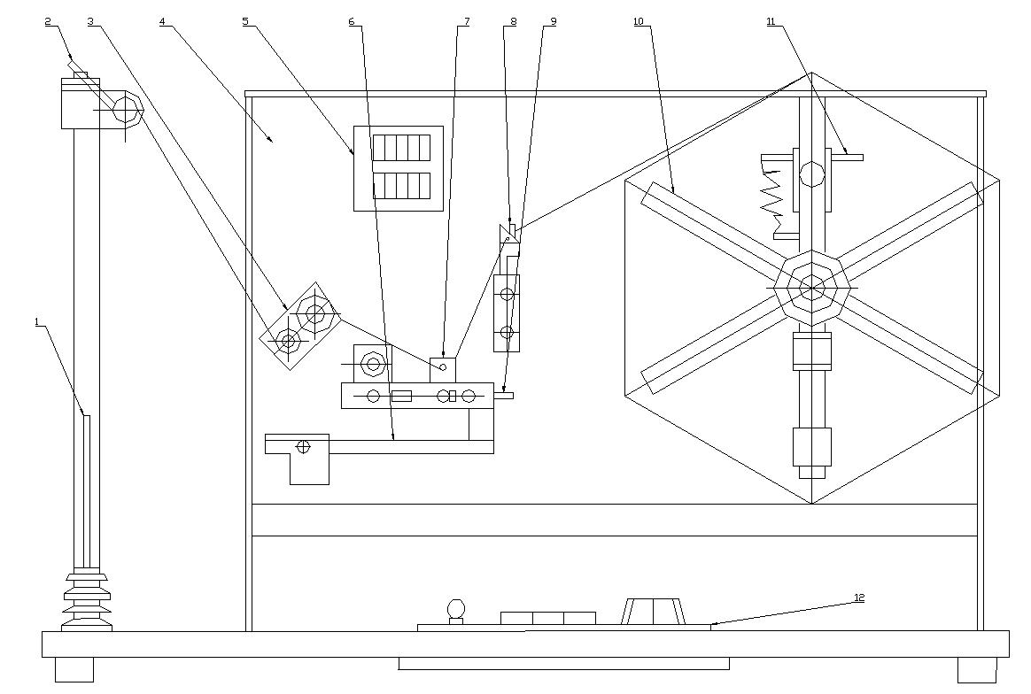 a、在纱框卷绕缕纱时,特别要注意张力秤游码在规定摇纱张力值处,张力秤6上的指针9是否指在面板4的刻线处,即卷绕时张力秤处于平衡状态。如不对,先调整张力调整器3中二根开式平行张力棒与纱线的包角来达到指针9指在面板4的刻线处附近,不得的调整可调电气控制12上的调速旋钮,即改变纱框转速来达到指针9指在面板4的刻线。卷绕缕纱过程中,指针9出现少量的波动是允许的。