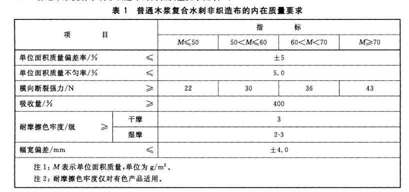 ②.功能性木浆复合水刺非织造布的内在质量要求