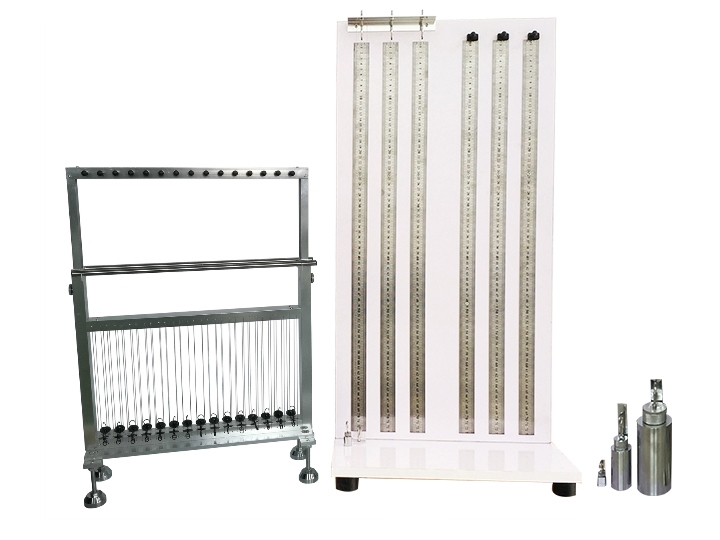 ①.装有6根测量直尺0-700mm,测量直尺上装有3个夹持器及3个挂丝钩,其中一组挂钩配2.5CN游码重锤一个。
