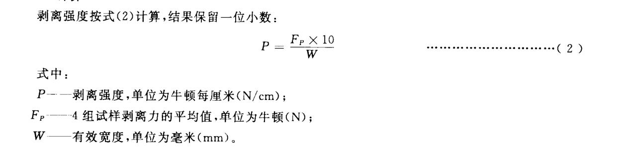 剥离强度是在规定的试验条件下,将粘扣带有效闭合区域从开口一端剥离分开每单位有效宽度所需要的力。