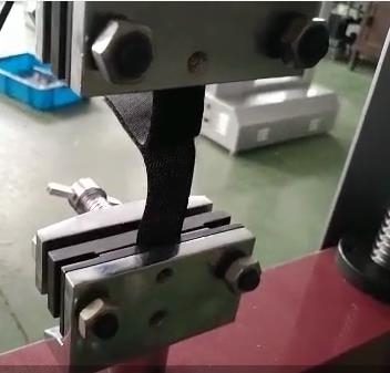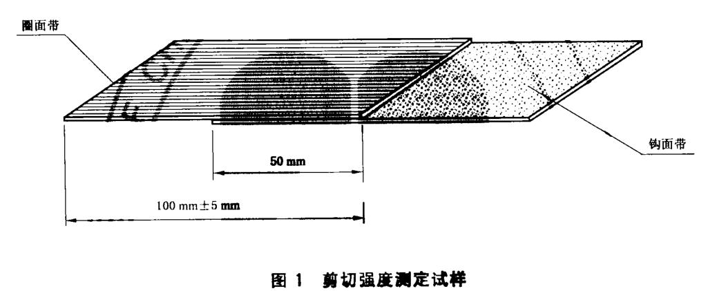 剪切强度是在规定的试验条件下,将粘扣带有效闭合区域沿其长度方向以恒定速度拉伸,使钩面带和圈面带平行分开每单位面积所需的最大力。