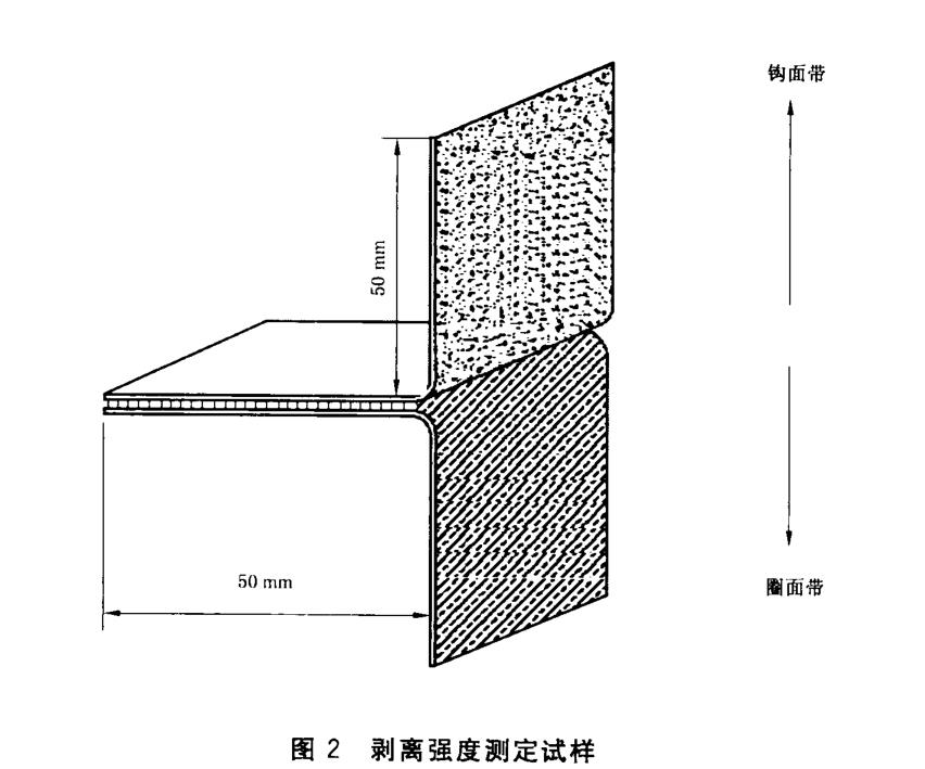 剥离强度是在规定的试验条件下,将粘扣带有效闭合区域从开口一端剥离分开每单位有效宽度所需要的力。