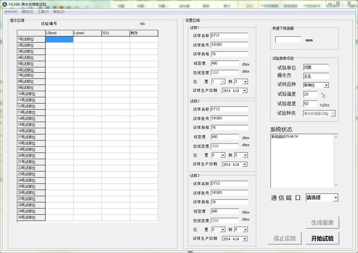 【YG368型长丝卷缩率测试仪电脑软件信息设置界面】