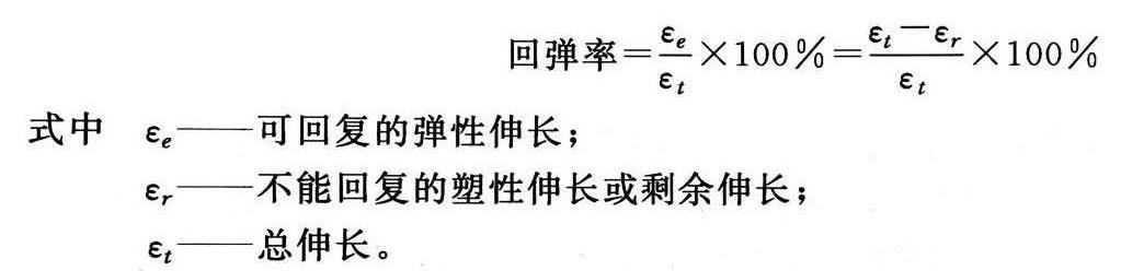 材料在外力作用下(拉伸或压缩)产生的形变,在外力除去后,恢复原来状态的能力称为回弹性(elastic recovery)。纤维在负荷作用下,所发生的形变包括三部分普弹形变、高弹形变和塑性形变。这三种形变,不是逐个依次出现,而是同时发展的,只是各自的速度不同。