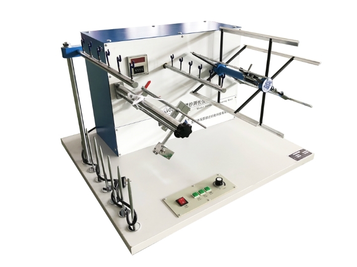 YG086C型缕纱测长仪用于摇取一定长度的纱线或化学纤维长丝,配合电子天平称取克重,用于计算纱线或化学纤维长丝的线密度(特克斯tex,分特克斯dtex,旦尼尔D,纱线支数等指标)。