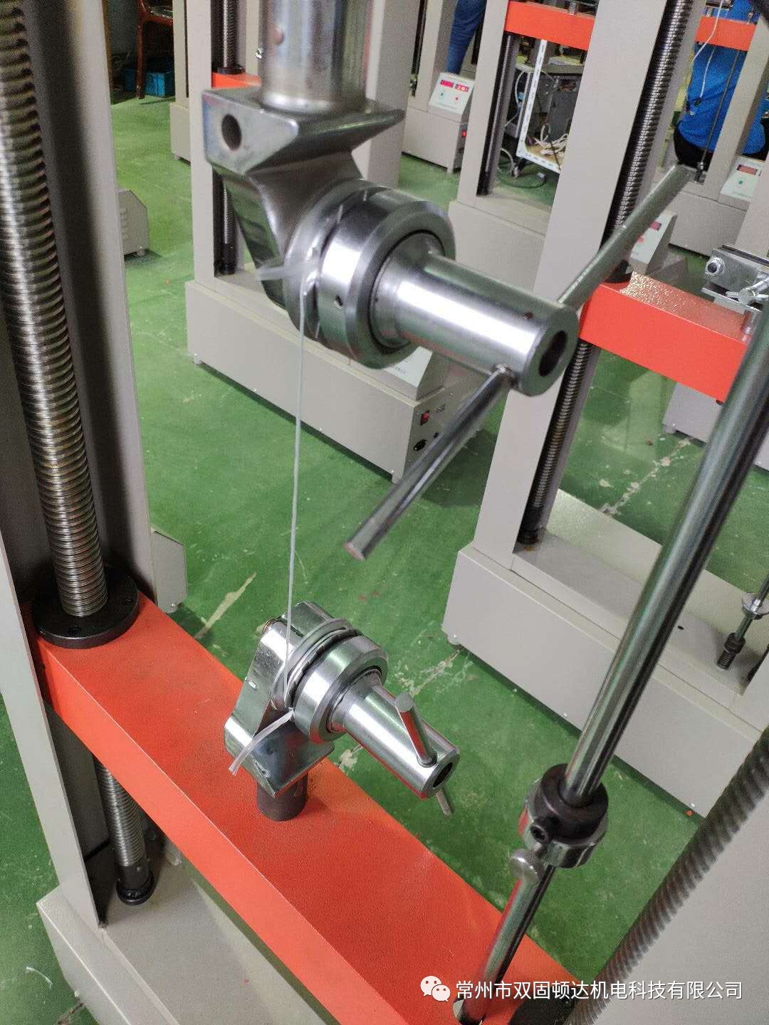 参照GB/T 19975-2005 高强化纤长丝拉伸性能试验方法,试验夹具为不易打滑和断夹口的绳线用夹具,检测仪器为常州市双固顿达机电科技有限公司自主生产的YG026B型电子织物强力机(绳夹具款)。