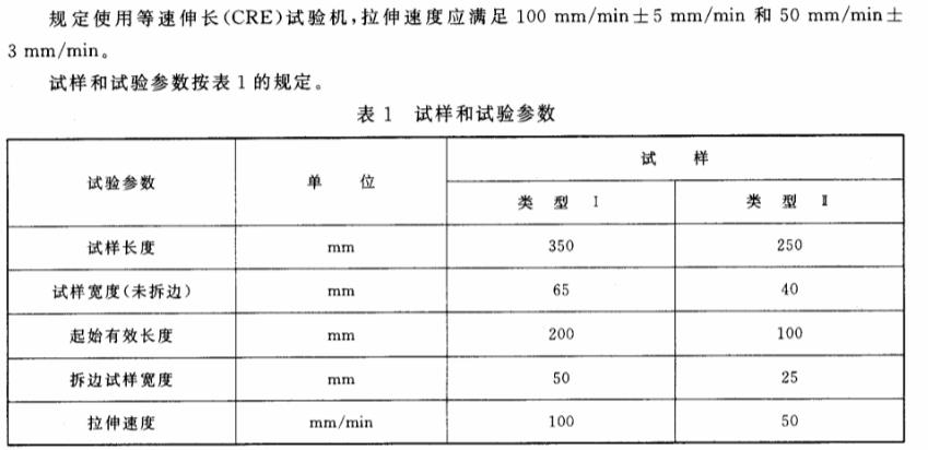 试样尺寸有两种,第一种试样长度为350mm,试样有效长度为200mm,除开边纱(拆边试样)的试样宽度应为50mm。