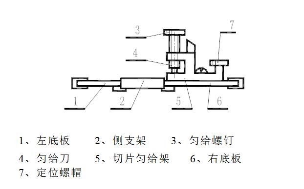 1.将匀给螺钉按逆时针方向旋动,使匀给刀不与底板平面接触,然后将定位螺钉轻轻拉起,使切片匀给架转动一定角度,以使纤维束顺利装入嵌样槽内。