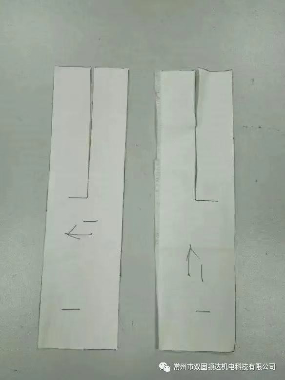 试样为矩形长条,长200mm,宽50mm,每个试样在宽度的正中间切开一个长度为100mm平行于长度方向的裂口,在条样中间距末切割端25mm处标出撕裂终点,电子织物强力机夹持长度设置为100mm,拉伸速度设置为100mm/min,记录其^大撕破强力。