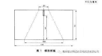 在试样上画一个梯形,用YG026B型电子织物强力机的上下夹钳夹住梯形上两条不平行的边,对试样施加连续增加的力,使撕破沿试样宽度方向传播,测定平均^大撕破强力。