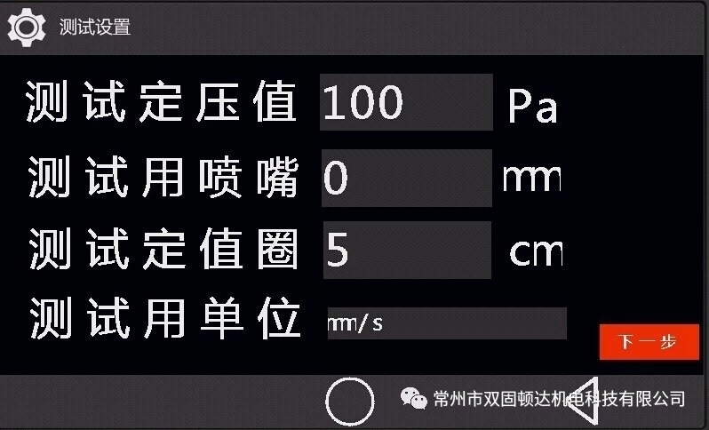 1.接通电源,在液晶触摸屏上按照标准设置测试条件。