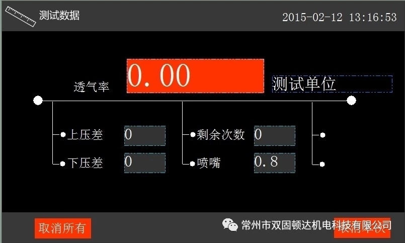 4.开始试验,按下机器压头,机器达到设定压差时、仪器风机自动停止,透气率数值自动显示在液晶屏幕上。