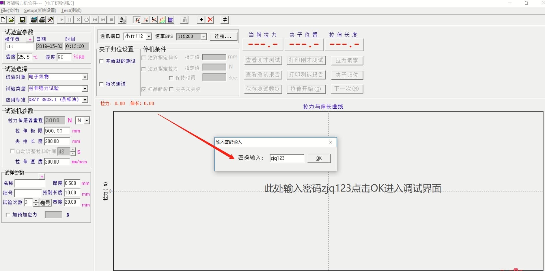 第二步:点击系统设置图标后,在输入密码处输入zjq123后点击OK进入调试界面。