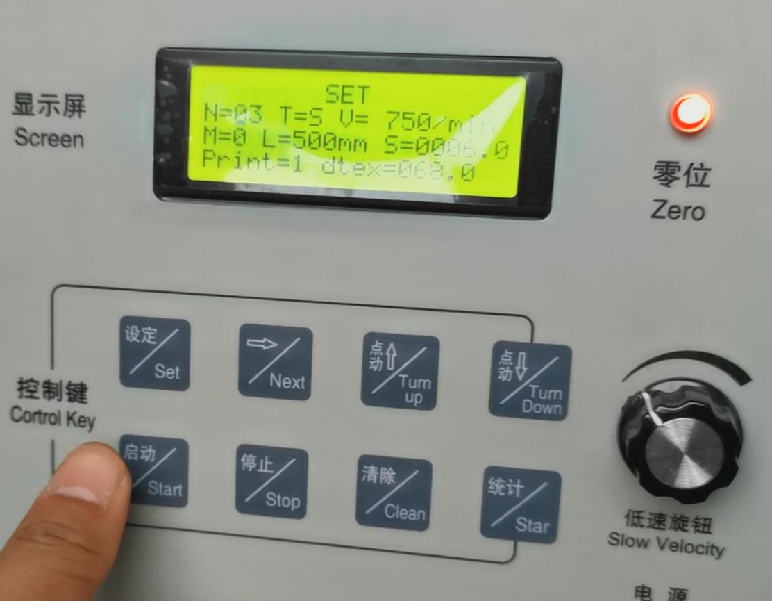 步骤一:打开Y331A电子纱线捻度仪电源开关,通电后点击设定/set薄膜开关,液晶屏幕会出现set界面。