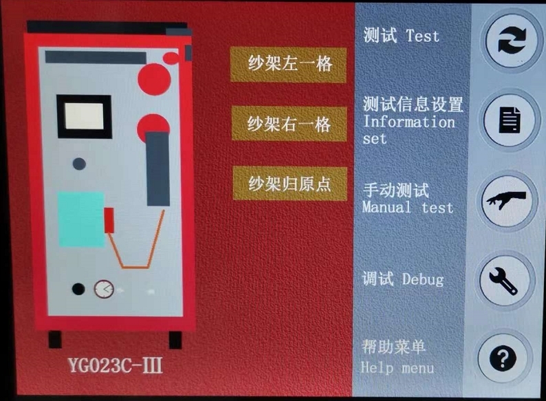 5、用户可以很方便的根据说明书,触摸屏来进行仪器的日常维护或校准,可以自主对测力传感器,夹持长度,拉伸速度,走纱架管数进行校准。