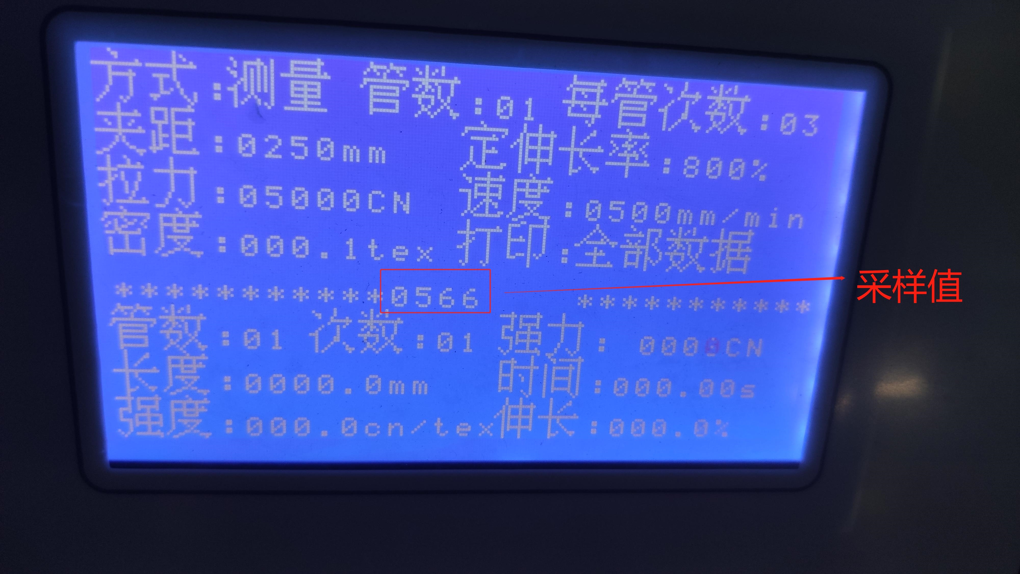 第三步:设备归位完成后会出现下图界面,会看到密度和管数的中间出现**************************0000*********************这样的字符,这是采样值。