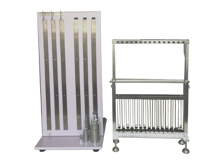 ①.装有6根测量直尺0-700mm,测量直尺上装有3个夹持器及3个挂丝钩,其中一组挂钩配2.5CN游码重锤一个。