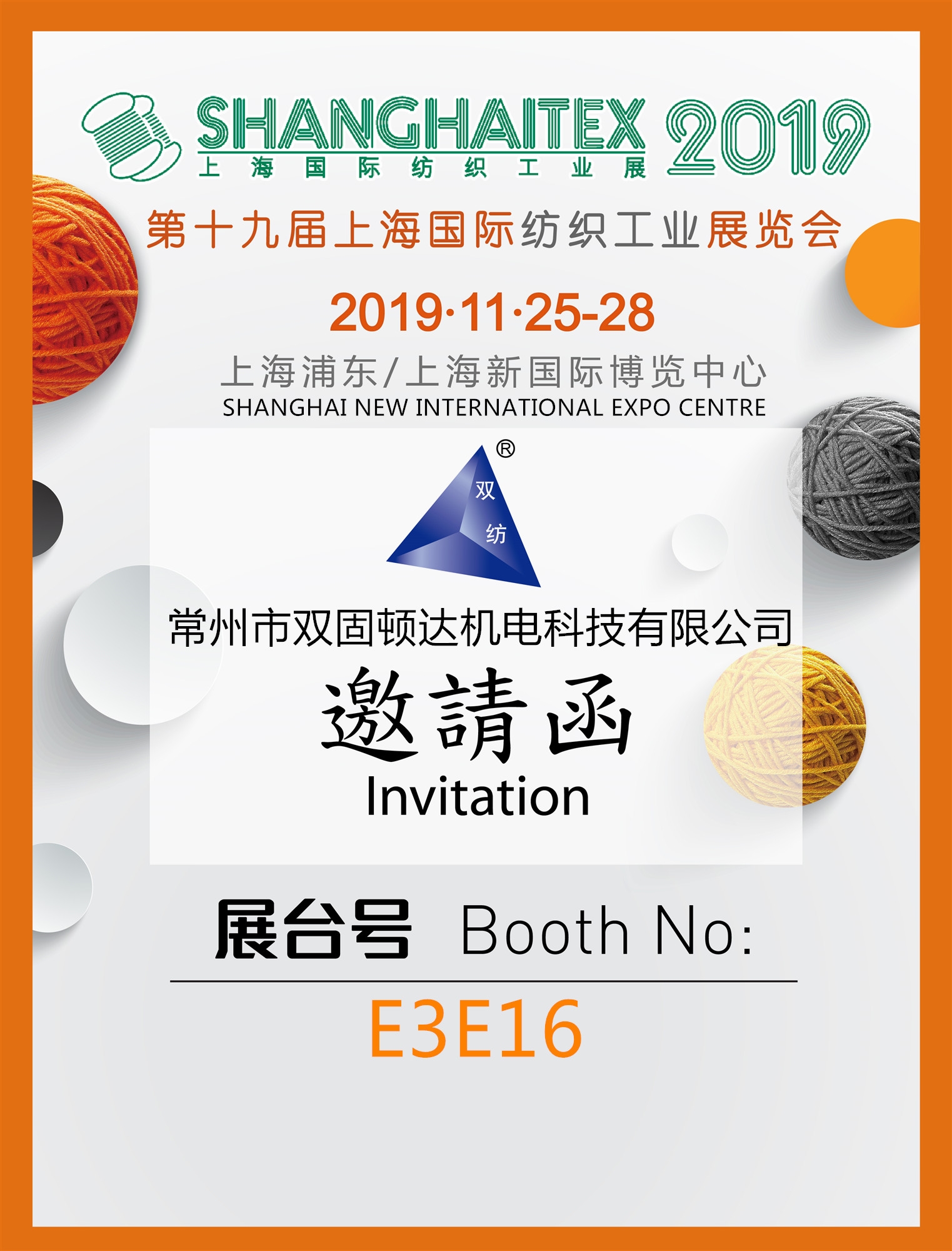 金秋十一月是收获的季节,收获金黄,收获火红,收获翠绿,收获希望,常州市双固顿达机电科技有限公司更有神秘期待将在11月国际纺织工业展览会,欢迎广大新老客户前来参观。