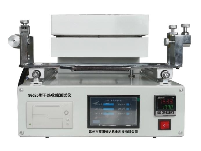 SG625型干热收缩仪(干热收缩测试仪)用于测试浸胶聚酯软线绳,锦纶、涤纶纤维制成的浸胶聚酯纱线、线绳和帘线,浸胶锦纶66帘线,浸胶锦纶6帘线,浸胶涤纶帘线,浸胶对位芳纶帘线,浸胶聚酯帘线,轮胎帘子线,涤纶工业长丝的干热收缩率(%)和干热收缩力(N)。