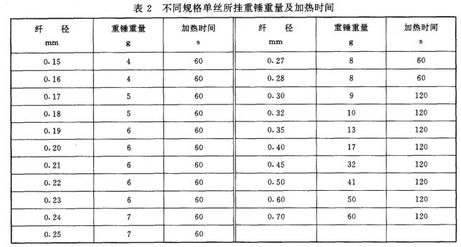 试验温度:200℃或者根据合同规定,重锤重量以及加热时间参照下图。