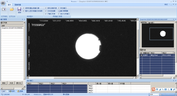(5)SG689手动喷丝板镜检仪(带软件),主要原理和SG689相同,但是该款喷丝板镜检仪是可以连接到电脑的(采用USB相机安装驱动后可连接到电脑),首先对于采集到的图像可以进行预处理,如图像的锐化,图像的二值化,图像的滤噪,并且配有软件来测量各种孔形的详细尺寸。同时还可以生成检测报告,对检测的微孔图片进行保存,方便对喷丝板的各项参数进行统计,软件界面如下。主要分为标配软件和定制软件: