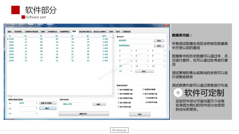 6、具有大数据统计功能,可生成周、月、年报表,方便客户控制产品质量。