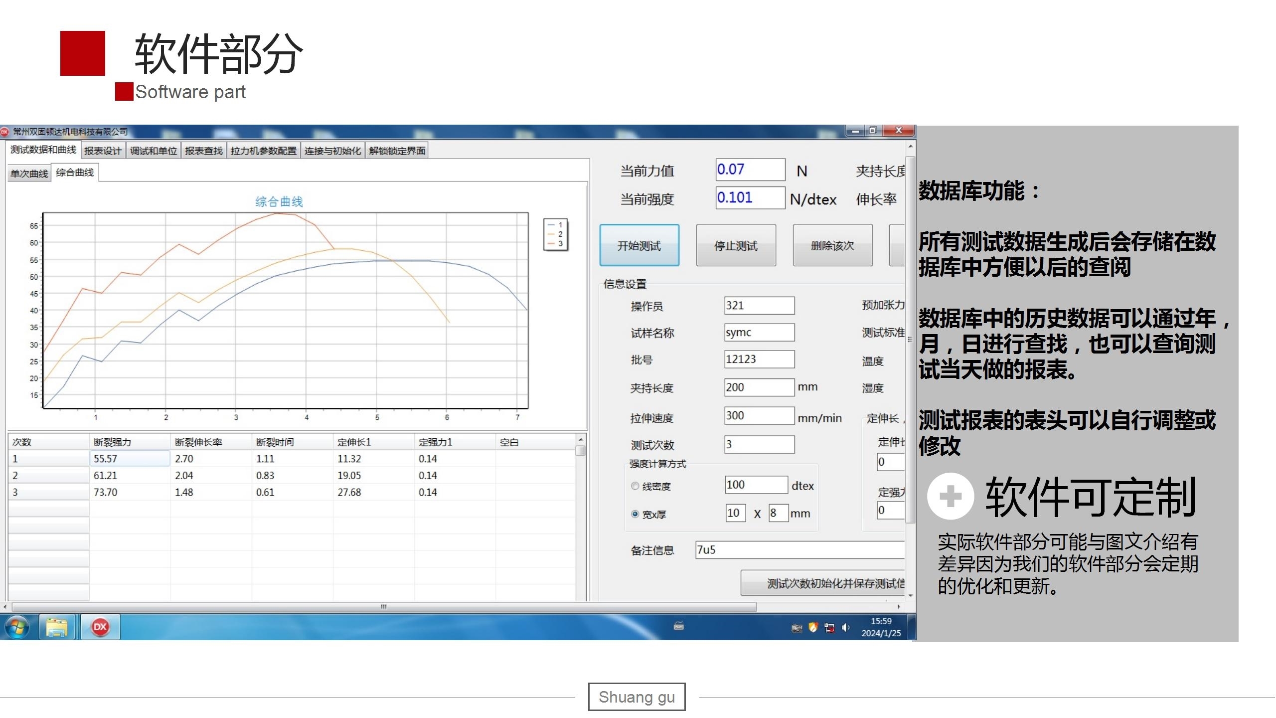 9、能够保存试验数据及结果,具有曲线显示,查询等必要的功能,试验速度连续可调,试样拉断自动停机,峰值保持等功能。